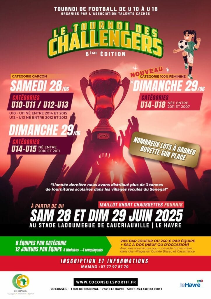 Le Tournoi des Challengers revient pour une 6e édition encore plus intense ! Regroupant les meilleures équipes toutes catégories confondues (10 à 18 ans). Certains joueurs ont même été repérés lors des précédentes éditions et ont eu la chance d’intégrer des stages en centres de formation professionnels.